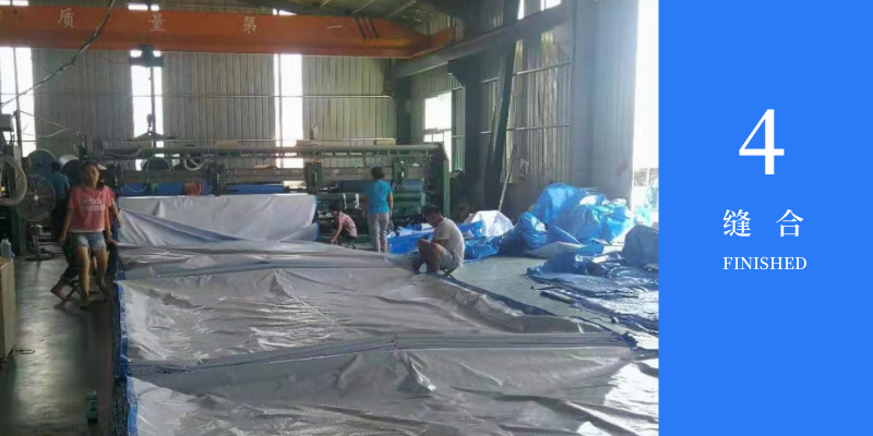 篷布的制作過(guò)程分為四步:拉絲,編織,覆膜和縫合。