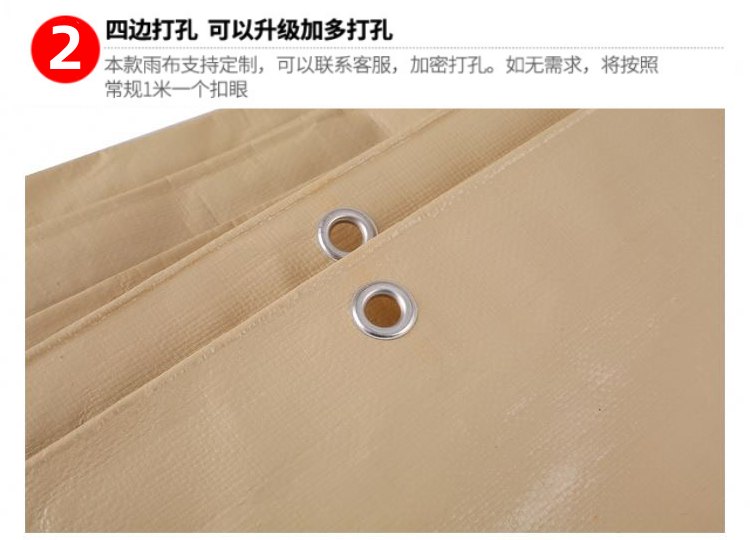 肉色PE防水篷布四邊打孔,默認常規(guī)1米一個扣眼,可以升級加多加密打孔,雨布支持尺寸規(guī)格定制。