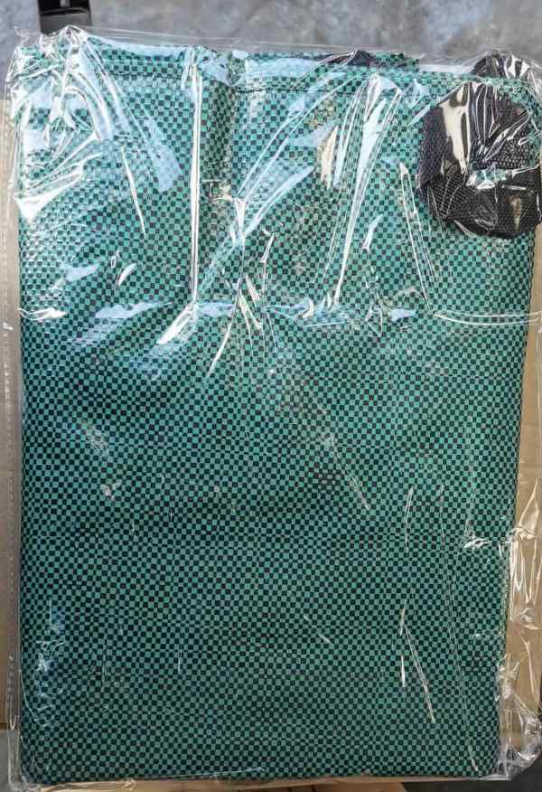 材質(zhì):PP/PE雙面覆膜綠黑格篷布+4個丙綸織帶提手